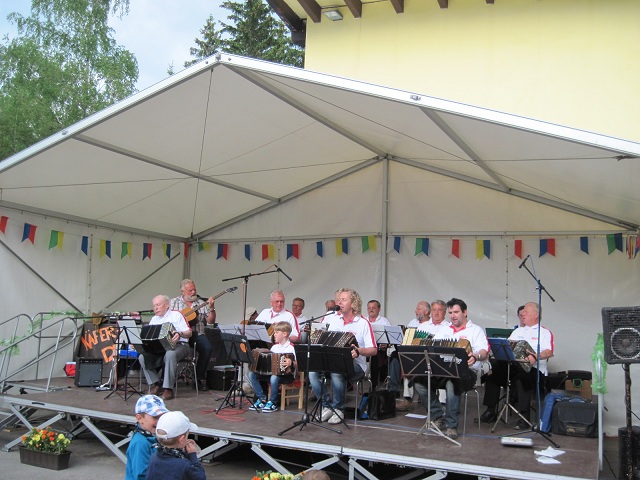 Auch im Jahr 2012 lud der Tourismus Zweckverband Spiegelwald am Pfingstwochenende ein. Mit dabei waren u.a. die Werkskapelle vom Sanitätshaus Augustin aus Thum. Vieleicht wird ja gerade dieser kleine Mann, vom Konzertinaspieler Markus Löschner aus Schönheide, auch einmal ein großer Musikant wie sein Papi! |